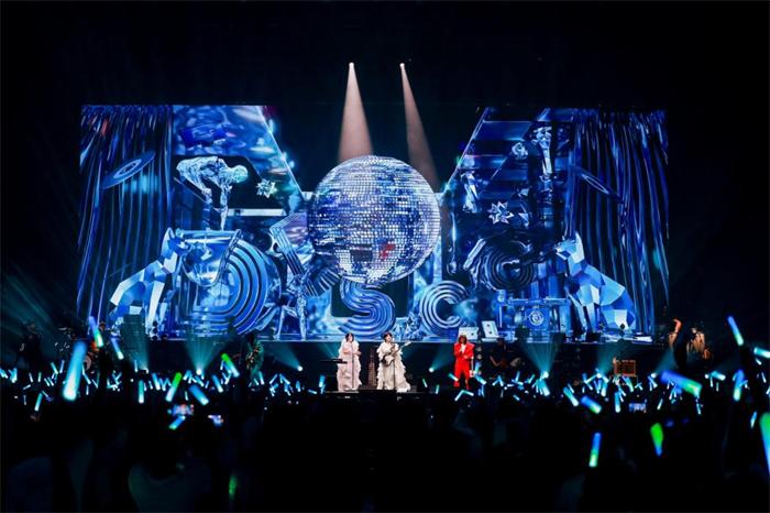 演唱会嘉宾环节同样精彩纷呈。本场演唱会特邀嘉宾马赛克乐队的登场带来了别样的律动。两个乐队惊喜合作,共同演绎了房东的猫的作品《银河迪厅》。不同乐队风格的碰撞与融合,将复古浪漫的情调推至顶点,音乐调性上的奇妙相和引发全场热烈共鸣。