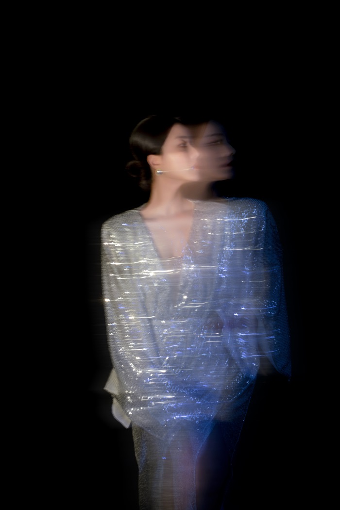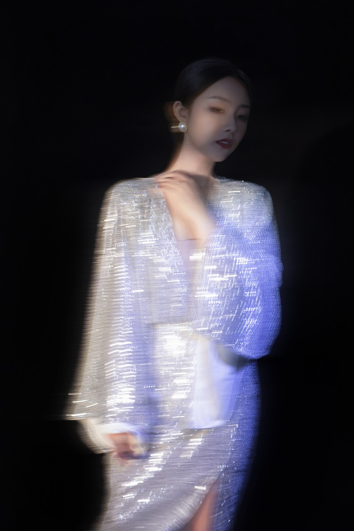 此次大片以复古亮片重工连衣裙为开端,高腰线及高开叉设计,凸显完美身材比例。镜头前的崔真真,一改往日青春活泼的“女汉子”形象,以干净利落的盘发搭配烈焰红唇,将轻熟优雅的气质展现的淋漓尽致。迷幻斑驳的照片风格,搭配崔真真深邃的眼眸,颇有一种“翩若惊鸿,婉若游龙”之态。