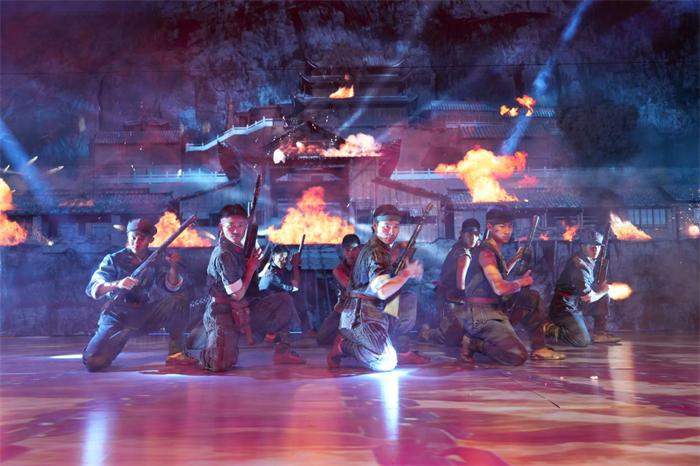 当晚,“铁血丰碑”—纪念红军飞夺泸定桥胜利90周年群众文化惠民演出在激昂的音乐声中拉开帷幕。演出以诗歌朗诵、情景再现、歌舞表演等形式,生动再现红军飞夺泸定桥的惊险场景,歌颂红军将士的英勇事迹,展现新时代甘孜州、泸定县经济社会发展成就和各族儿女团结奋进的精神风貌。