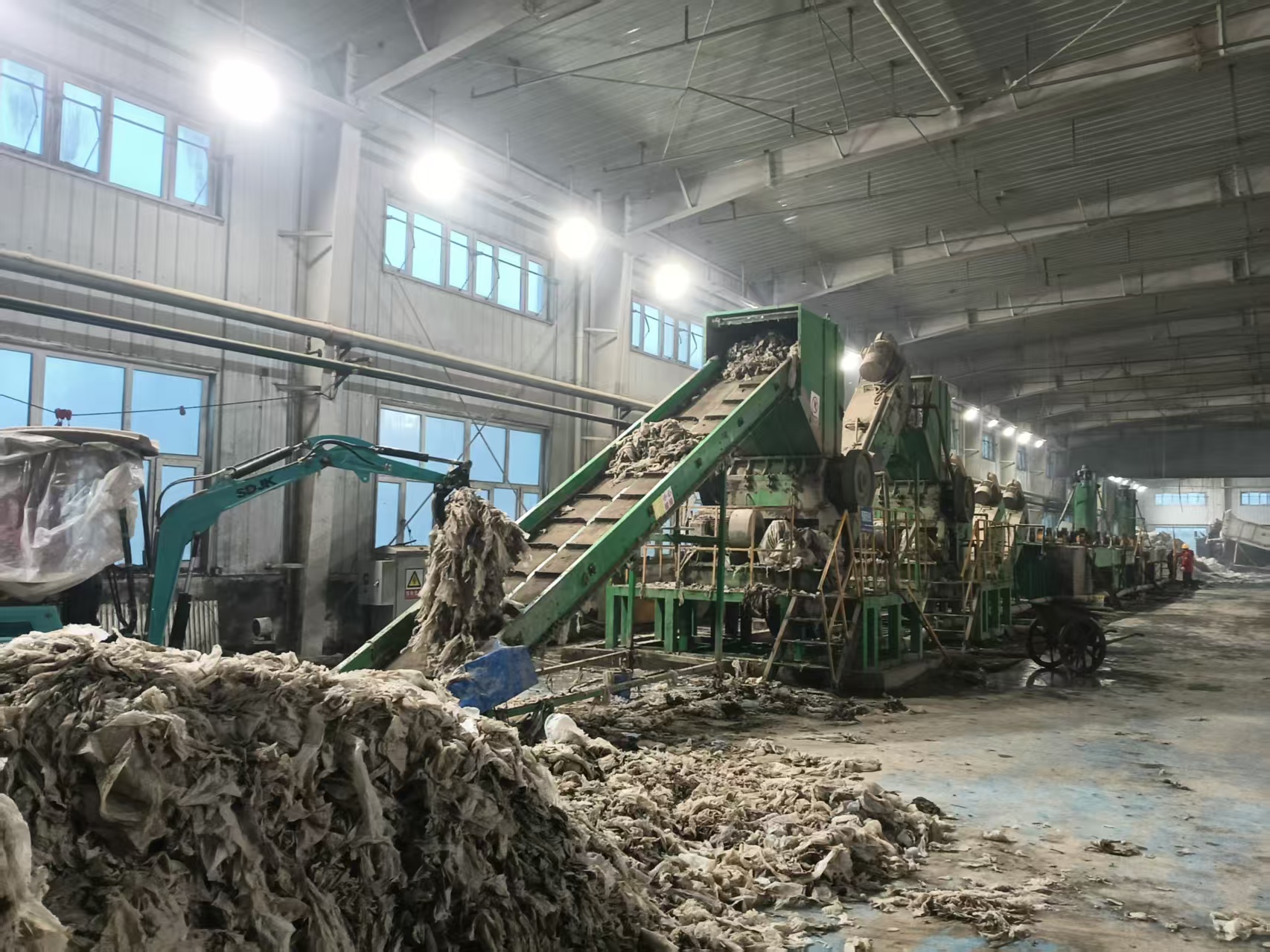 走进第五师双河市京环新能环境科技有限公司,占地6200平方米的厂房内,全自动化生产线正有序运转。作为专职的残膜处理企业,机收残膜经过分切、脱土、清洗、造粒等多道工序,短短数小时,便转化为高品质的再生颗粒。