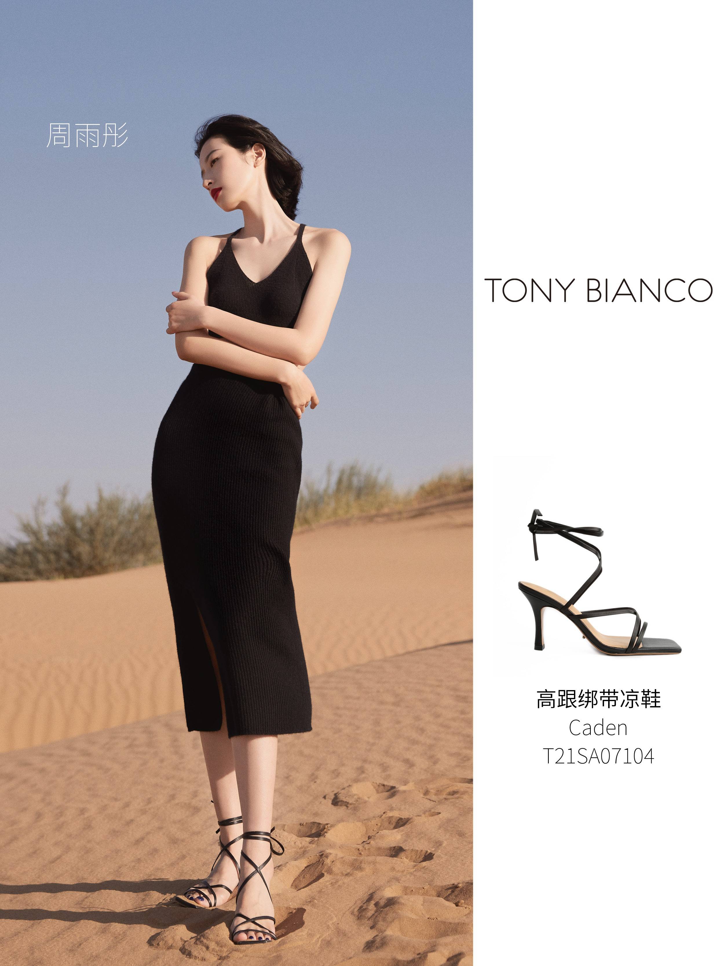 前段时间周雨彤参加品牌活动,一席黑裙现身无垠沙漠,黑发红唇诠释荒芜与妩媚的融合质感,此性感慵懒的裙装之下,周雨彤搭配了同是TonyBianco的绑带高跟凉鞋,为整体造型增添缠绕缱绻的美感。