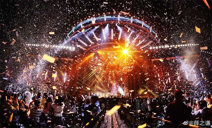 星河共赴,无尽期许终将降临!12月24日19:30薛之谦“天外来物”巡演正式于海口火热开启。薛之谦一头“顺栗”发色舞台上激情献唱,历经数次官宣与延期,“天外来物”海口站巡演终于如期与歌迷见面,舞台上久违的薛式旋律响起时,无数歌迷抑制不住激动的泪水,魂牵梦绕许久的场景来到眼前,一切显得不真实却又无比熟悉。作为疫情放开后的首场演唱会,又恰逢平安之夜这一寓意美好的节日,“天外来物”海口站当晚人头攒动,上座率惊人,歌迷们一呼百应再度与薛之谦上演动人的双向奔赴,也为薛之谦的演唱会号召力增加无限底气。薛之谦本人对这场久别重逢更是万分欣喜,整场演唱会结束时他如孩子般在舞台上奔跑随后跪地感谢到场歌迷,诉说着391天的心心念念。这场承载着美好与思念的万人狂欢注定在“薛式家族”的共同记忆中再添永恒一笔。