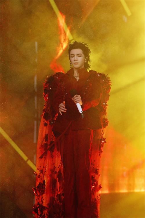 一片期待声中,“火星演唱会”晚上场开幕,华晨宇身着一袭红衣从舞台上空缓缓降临,红色衬衫及西装外大胆设计立体亮片花朵,背头造型+玫瑰红在雨水的映衬下越发不真实,犹如“玫瑰战神”般夺目四射。而这套开场造型引起强烈反响的原因不止于此……十年前,青涩的华晨宇也是穿着一袭红衣拿下《快乐男声2013》年度总冠军;2020年,《歌手当打之年》歌王之夜总决赛落幕,华晨宇获得当季冠军,成为2013年节目开播以来的第八位“歌王”,也是最年轻的一位,而那时的他同样身着红衣。花花十年后再次身着红衣现身,正是与十年前的自己梦幻联动,他也在演唱会现场表示:“很开心能回到梦开始的地方。”长沙站有震撼的奇遇也有“花一般”的欢乐,《For forever》舞台与此前相比在舞美配置上惊喜变幻了泡泡机特效,而演出当天恰逢端午节,华晨宇团队与演唱会主办方还贴心准备了火星专属的“节日伴手礼”冰粽、绿豆糕、棒棒糖等定制美食,令火星人再度感受到家的温暖。
