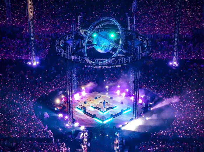 随着火星演唱会的到来,花花再度带着奥运舞美、国内唯一超长延伸台空降长沙。舞台总体设计用“火星万物涅繁,迎来新生,文明得以延续”为基础,以音乐架构起虚幻与现实的桥梁,展开艺术与科技的对话。主舞台上巨大的艺术装置构成了“文明主城”,家舞台则更像是一台“星际装置”,满满的科技元素,让人恍若置身科幻大片中的奇幻世界。同时,演唱会根据不同地域、不同天气定制专属细节构想,使每一次舞美都成为限定版“独家记忆”,长沙间歇性的阴雨天气中,再度让人们感受到“火星撞地球”的别样氛围。蒙蒙阴雨为火星舞台增添了一层神秘,不少歌迷表示“阴雨天的舞台有种末日科幻感”,细心的歌迷还发现,不同于晴天镜面随机折射的千变万化效果,阴天状态下的舞台还呈现出神奇的“消失”效果,晴天似镜花水月、阴天似海市蜃楼,即便身临其境也很难概括出其中的美好。