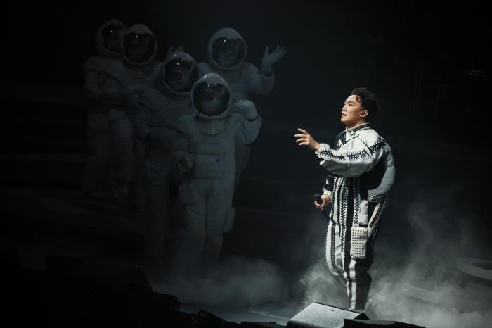 过去巡演,Eason会带着「尘大师」巨型公仔给歌迷打卡,本次重启,「尘大师」宣告退休,打卡上新,演唱会舞台上1:1大型实景装置,沉浸式舞台感受令乐迷又惊又喜,争相排队打卡Eason同款。Eason自己更亲到场尝试展示,但见他开心如舞台上跳上跳下,甚至爬在地上打卡,也表现身体已康恢如常。演唱会上Eason首次透露心声,大家才知道现场极佳状态的他,原来也是心有忐忑,紧张到不得了,他不停自我鼓励,每天踏前一步,一步再一步,他更以自己心态去鼓励所有遇上问题的朋友可以勇往直前,只要愿意前行,就一定比原封不动好。