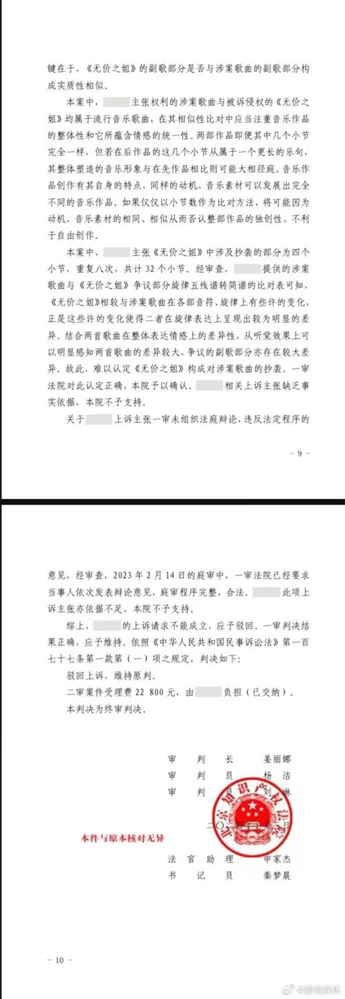 李宇春演唱的歌曲《无价之姐》被诉抄袭侵权一案,北京知识产权法院已于近日二审判决,维持北京互联网法院的一审判决,认定《无价之姐》与歌曲《跟我出发》不构成实质性相似,不构成抄袭,董某某的诉讼主张缺乏事实及法律依据。判决驳回董某某的全部诉讼请求,案件受理费由董某某负担。