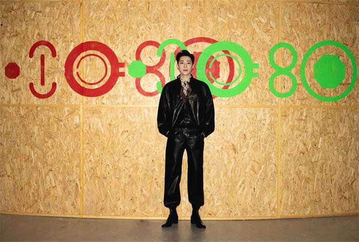 赖冠霖出席GucciCosmos活动 身穿皮衣享游旋转空间