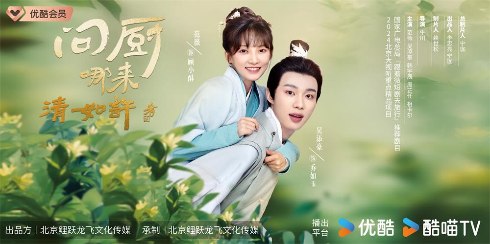 ▲《问厨哪来清如许》10月29日上午10点,古装美食爱情喜剧《问厨哪来清如许》上线优酷平台,每集10分钟共20集。该剧由北京鲤跃龙飞文化传媒有限公司出品,出品人李忠亮、宁珈,总制片人宁珈,制片人赖世松,导演牛川,由范薇、吴添豪、韩宇辰、周芷任、祖卡尔···
