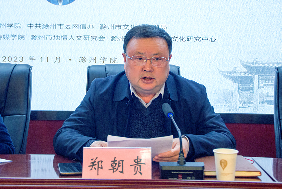 郑朝贵代表学校对与会专家表示欢迎和感谢,表示将虚心向各位专家学者学习,认真吸纳会议成果,深入发掘滁州文化资源,积极推进新文科建设,对包括醉翁文化、阳明文化、大明文化、儒林文化、非遗文化、红色文化在内的滁州特色地方文化守正创新,在习近平文化思想的引领下进行创造性转化与创新性发展,以文化人、以文育人,培养更多“勤学善思、知行合一”,契合强国建设、民族复兴需要的高素质应用型新文科人才,以实际行动助力滁州文化强市建设和国家级历史文化名城创建,共同建设现代化美好滁州。
