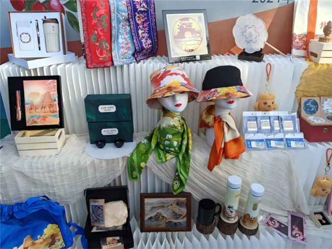 活动现场,展示了巴州八县一市多款具有特色的文创产品,包括楼兰织锦、卫衣、手提包、水杯、明信片、冰箱贴和纪念币等,不仅设计精美,而且蕴含了深厚的巴州历史和文化底蕴,吸引了众多游客的目光。
