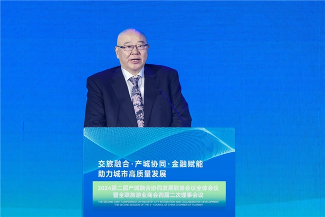全国工商联党组成员、副主席邱小平在致辞中表示,此次会议以“交旅融合、产城协同、金融赋能、助力城市高质量发展”为主题,围绕新形势下文旅等产业与城市融合发展的新理念,新路径、新模式进行探讨,推动文旅产业赋能城市经济社会高质量发展。产城融合是产业转型升级与城市功能提升的集成创新,因地制宜发展新质生产力是产城融合协同发展的重要推动力。文旅融合发展已成为产城融合的重要抓手和发展引擎。要坚持和落实“两个毫不动摇”,着力构建支持国企民企协同发展的体制机制,推动双方围绕产业链、供应链、价值链、创新链建立长期稳定的合作关系,在不断深化合作中实现优势互补、共同发展。