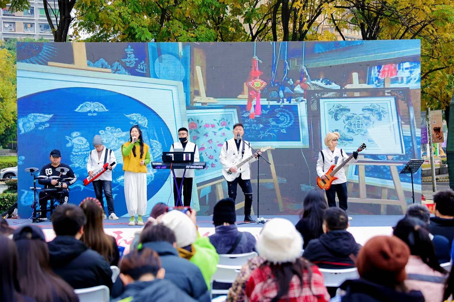 在音乐狂欢中,泸州本土知名乐队1574与舞者们共同为游客们带来了精彩绝伦的表演。歌伴舞《初心之旅》、1574乐队的经典曲目《酒城的风》《当》和《奢香夫人》,以及时代歌舞团的舞蹈《鼓舞齐天》和《酒韵》,多样化的音乐风格和浓厚的泸州元素,满足了每一位游客的听觉和视觉需求,让现场气氛热烈非凡,游客们纷纷沉浸在音乐的海洋中。