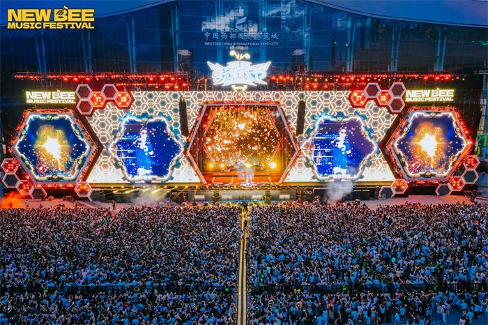 新蜂音乐节成都站以国际化水准、顶级配置、极致观演体验为目标,全面升级制作班底与技术标准。由业内顶尖导演团队V STUDIO TEAM全案主导,联合国内一流舞美、音响、灯光、视频、乐器技术团队,从舞台设计到演出流程,每一环节均对标国际大型演唱会与音乐节,开辟多元音乐节主题,全力探索线下演出的新出口!凭借对声浪的极致追求,演出全场采用法国L-Acoustics世界顶尖音响品牌,部署超150支全频、补声、超低音响系统,声场覆盖纵深超300米,实现高密度、无死角、沉浸式声音体验。无论站在舞台前区的声浪最前端还是后排区域,都能享受同级别震撼。成都站还以“极速换场”刷新音乐节节奏,用“高潮无缝切换”打造一场持续沸腾的舞台大秀。