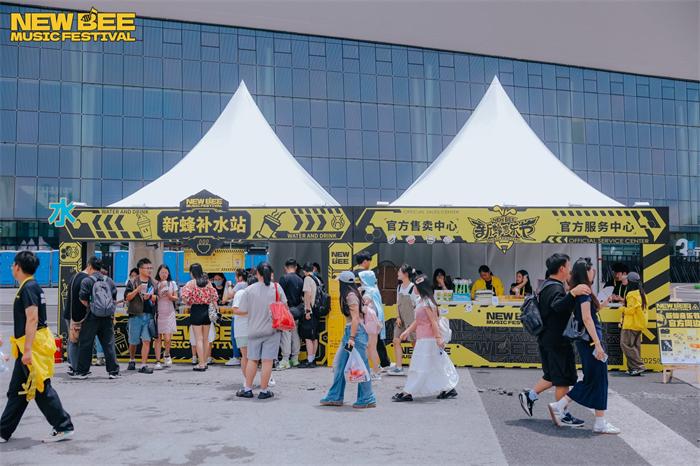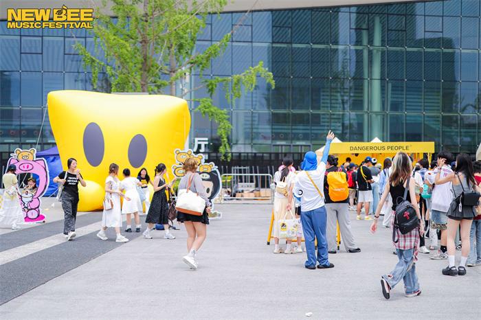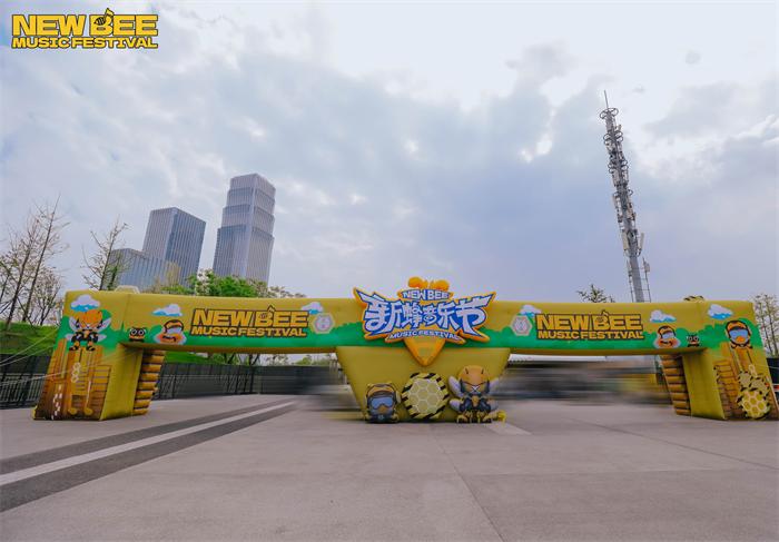 此外,本次音乐节玩法全面升级。“雨果”“埃尔”“嗡嗡”等虚拟IP“蜂格分裂”开启NewBee TV,以魔性有趣的方式为观众解读多方面安全注意事项和须知。现场设置“打工人语录”多个互动区,入场即化身“工蜂”参与剧情。随处可见的明黄色虚拟IP大型充气玩偶、重量嘉宾薛之谦主理品牌DSP的纸袋人充气玩偶,都吸引众多观众打卡。音乐节还在线发起“敢潮敢蜂”的主题穿搭活动,首创“黄黑出街”穿搭文化,鼓励观众以黑黄主题撞色造型出街。在与观众的互动环节,新蜂专属小蜜蜂、成都特色熊猫玩偶、麻将人等,不定时出没,特色大型广播体操“精神状态”引发热议,完美契合当代年轻人“发疯”文化。