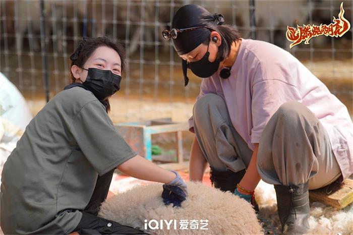 剪羊毛时节到,“月亮”们要在4天内完成700只羊的剪羊毛工作,虽然干劲满满,但小羊们不知道哪里来的“牛劲”,王美涵被羊飞扑,王思晗抓不住羊腿索性和羊共舞华尔兹。经过前两天适应,大家总结出了“以效率为主,美观为辅”的经验,第三天,女生们的手法明显娴熟了很多,速度和数量大增。最后一天时间紧任务重,荆唱一早去羊圈分羊,意外突发低血糖晕倒,在姐妹们和工作人员的帮助下,好在很快恢复。谢菲不小心被剪刀划伤了手,另一边的陈如更是意外戳伤了自己的腿,包扎完毕后不带一丝犹豫继续赶工。所有人埋头苦干,到仍然没有完成原定KPI,导演组见状及时伸出援手,网友们也看到了“girls help girls”具象化,感受到了女性工作人员给予的安全感。