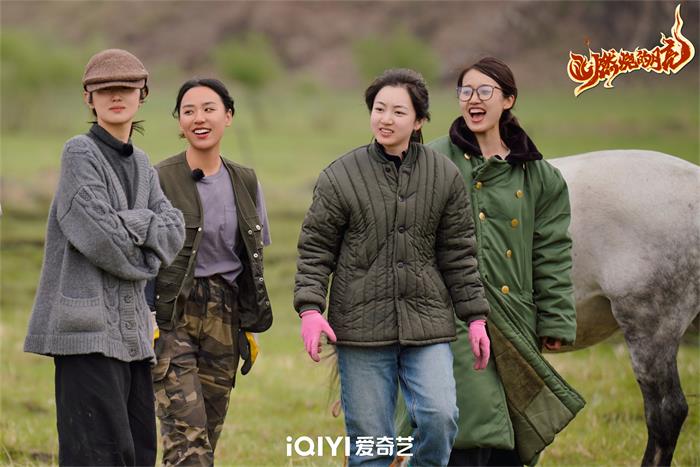为缓解住宿紧张,女生们尝试搭建蒙古包。圈哈那、杵乌尼杆、撑起套瑙……蒙古包里的学问真不少。好不容易搭建个雏形,乌尼杆突然断裂,蒙古包塌了下来,女生们一时间不知所措。荆唱首先复盘问题,迅速发现原因,女生们只得重新再干。这一次12位女生全员到齐,更换新的套瑙,围好各种毡布,卯足了劲儿绑绳子,蒙古包终于搭建完成。荆唱迫不及待要体验住蒙古包,王荣玉随后也加入住宿,“月亮”们的新家就此“立住”了。布置完蒙古包内部,姐妹们切换到女生宿舍模式,王荣玉和谭秋爽互相分享起自己拍的草原日常,陈如来借橡皮筋,荆唱一针见血道出女生的橡皮筋只借无还,点滴细节引发网友共情。这天,荆唱和王荣玉一起修补羊倌房的窗户和吊顶,荆唱认为吊顶的布有些歪,邀请王荣玉一起重新调整,王荣玉表示:“问就是可以”,“乙味”金句同样也引起网友讨论,纷纷感慨“人一旦做过乙方就定型了”。而另一边张歆梦痛经,和王荣玉聊起止痛药,真实对话引发网友点赞:“全女综大大方方谈论痛经看舒服了!”